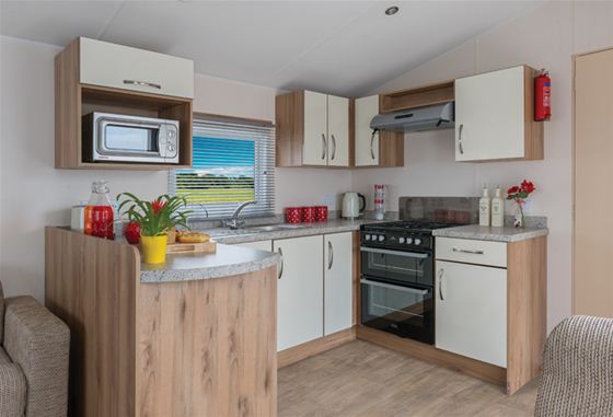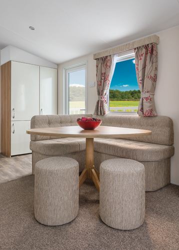 The Rio Gold has plentiful seating in the generously sized lounge and the neutral colours of the upholstery co-ordinate exceptionally well with the delicate red detailing in the curtains. The large fixed dinette offers valuable additional seating and also doubles up as a great place to play board games or spread out the weekend papers. The practical kitchen contains an abundance of cupboard storage space and there are a variety of optional fridge-freezer configurations to accommodate your personal preferences. The bedrooms include co-ordinated curtains which strike a visual balance with the neutral tones of the internal walls and complement the feature upholstered headboards. Shower rooms are bright and airy, and the pastel blue wall colour evokes a sense of total relaxation. Also included are white sanitaryware and a high quality one-piece fibreglass shower enclosure as standard. With a great specification that belies the exceptional value, the Rio Gold is a fantastic family-orientated holiday home range of some distinction!