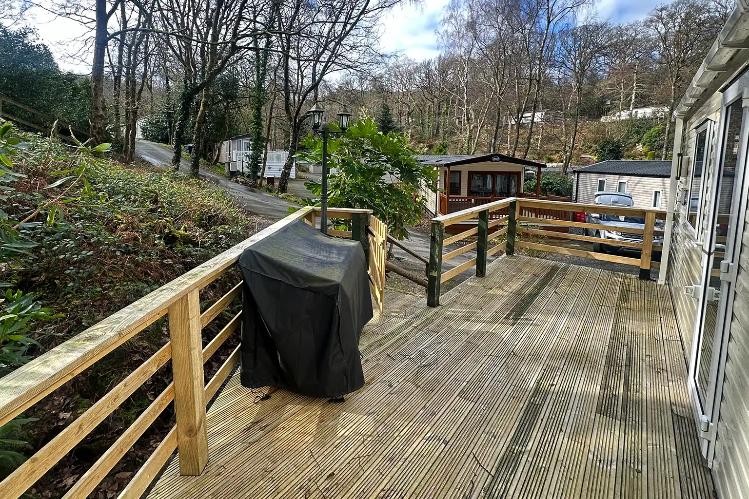 A lovely 2-bedroom starter holiday home in The Hollies, complete with decking, double glazing and central heating — perfect for relaxed breaks at Aberdunant Hall.