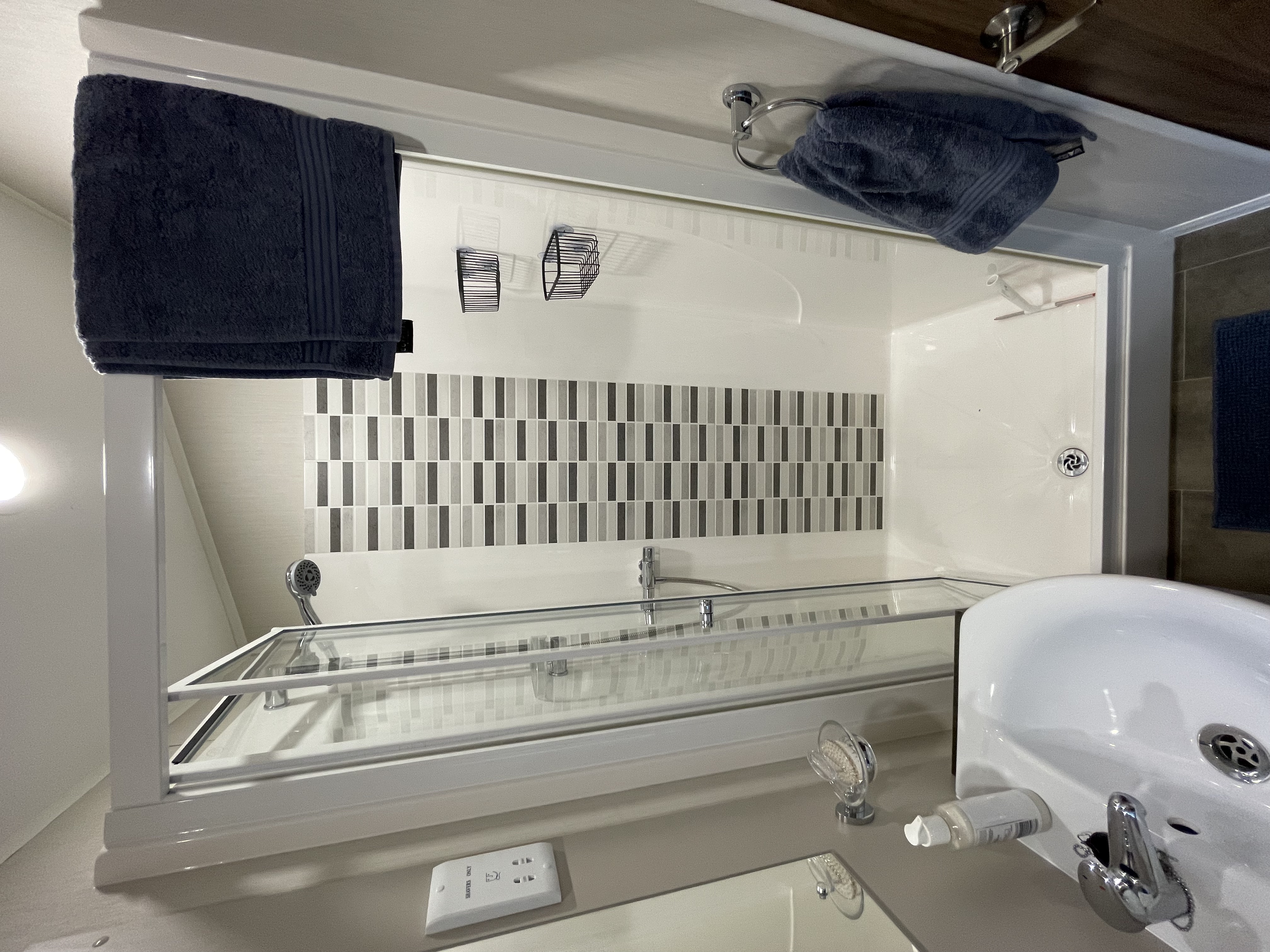 To the rear, we have fitted an outdoor hot and cold shower (great for rinsing off boots or dogs!).