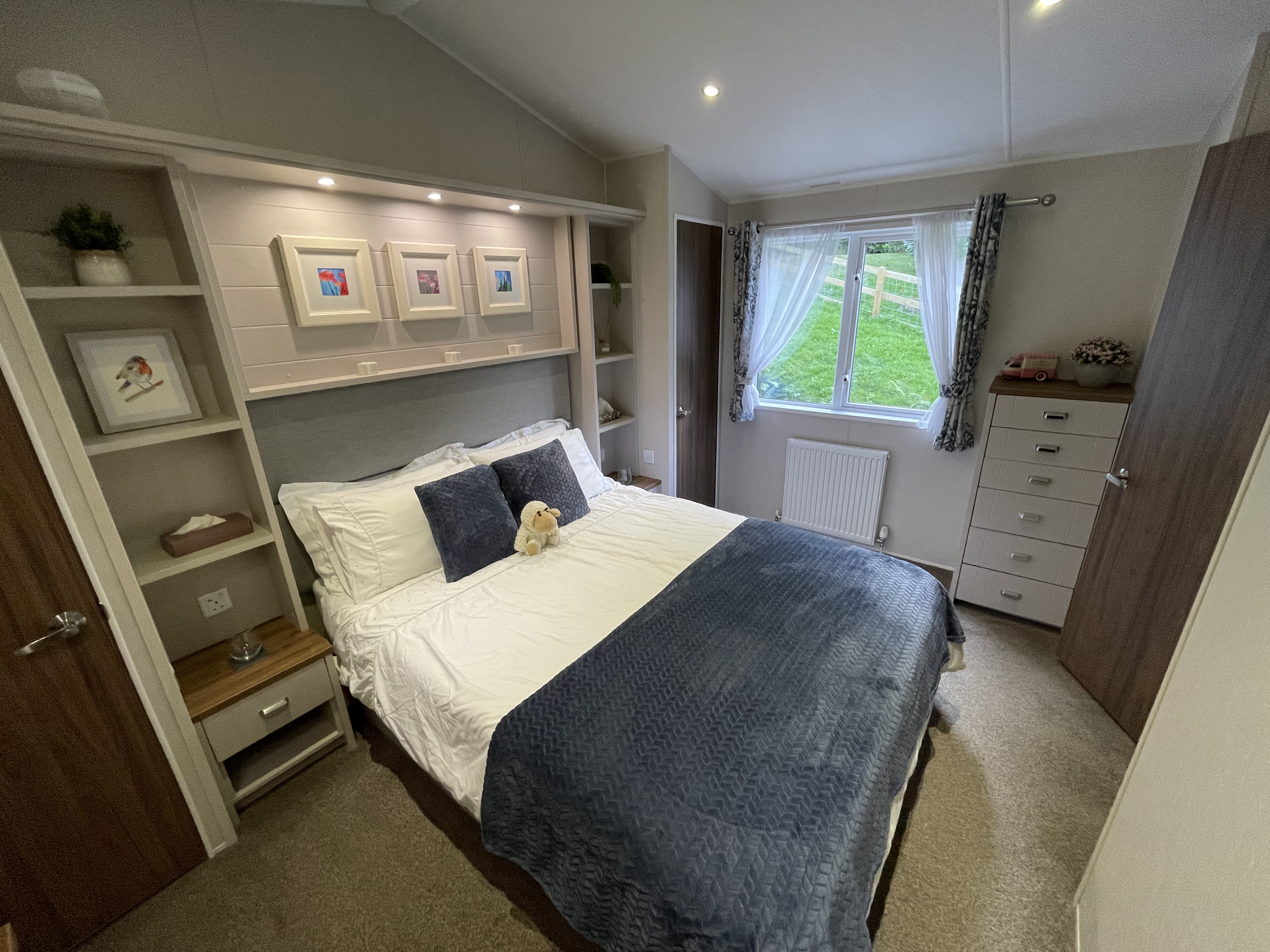 The master bedroom has a king-sized bed (ottoman style bed for extra storage) and upgraded memory foam mattresses. There is also a dressing table, built-in chest of drawers and walk-in wardrobe. Off the master bedroom is an en-suite shower room with toilet, wash basin and large shower.